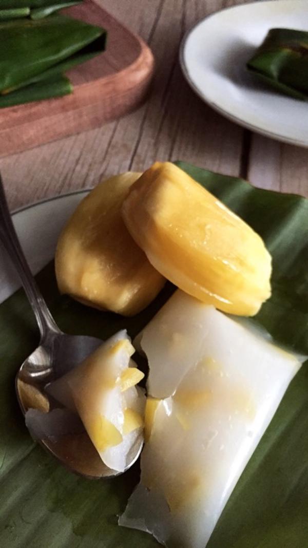 Rebus santan, daun pandan dan garam sampai mendidih.